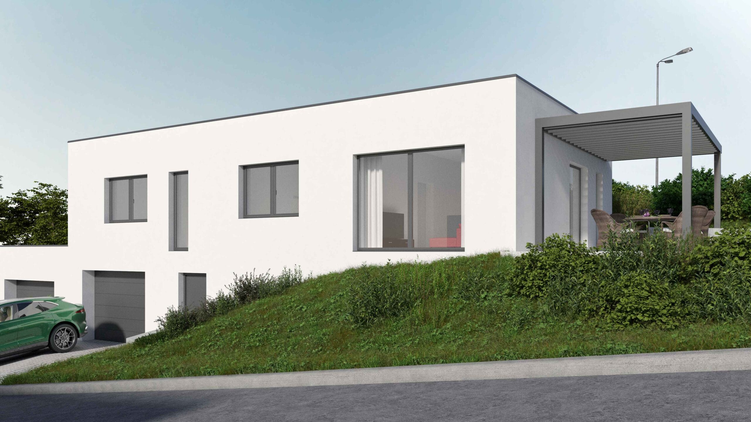 Na tomto stavebním pozemku v lokalitě Branky Luhačovice je navržen moderní rodinný dům se dvěma podlažími a plochou střechou. Dům tvoří dvojdům společně se sousední navrženou stavbou.